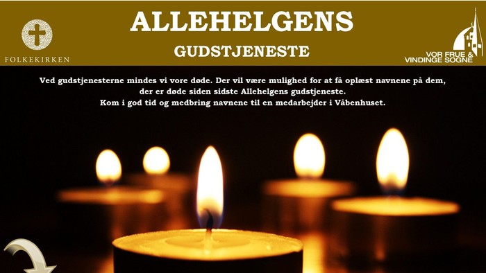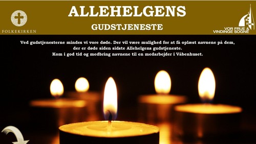 Der vil være mulighed for at få oplæst navnene på dem, der er døde siden sidste Alle Helgens gudstjeneste.